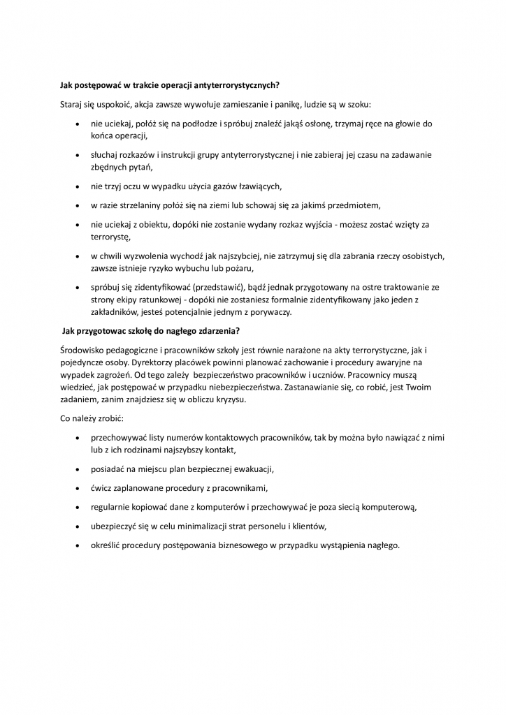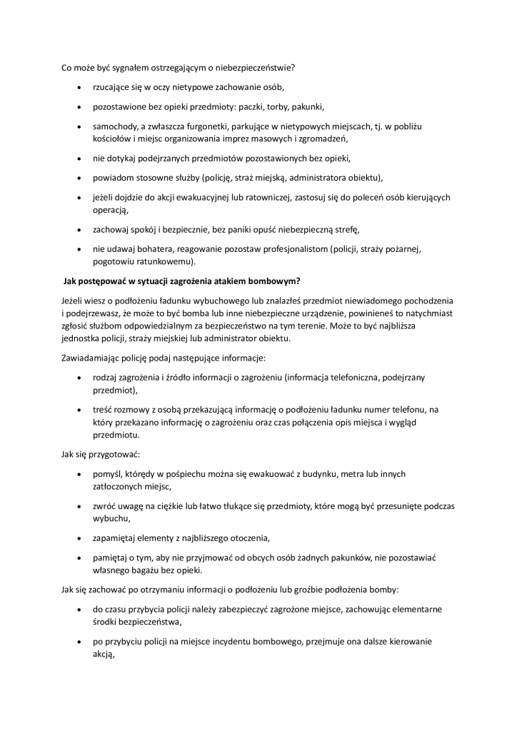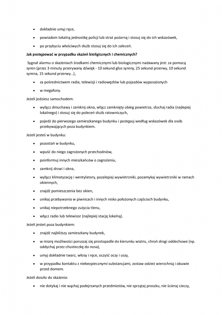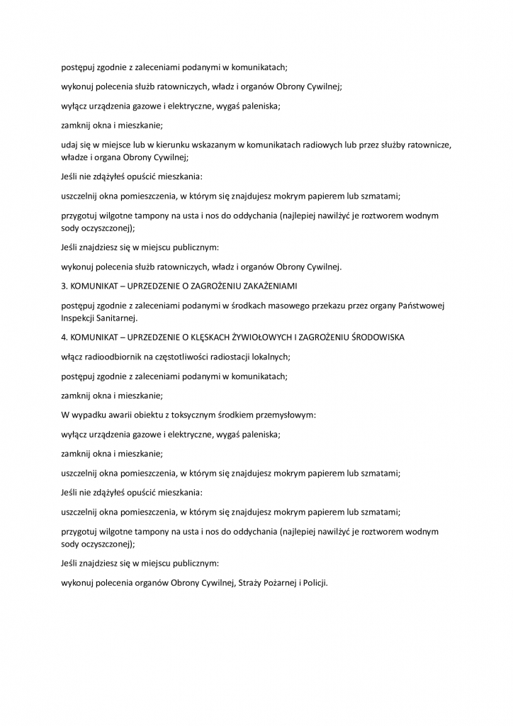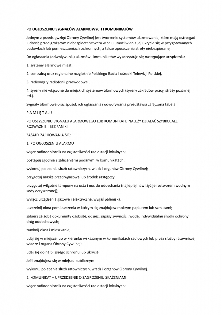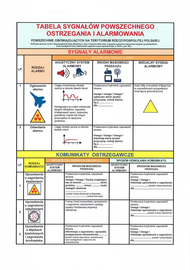 Informacja o sygnałach powszechnego ostrzegania i alarmowania oraz reagowania w sytuacji zagrożenia