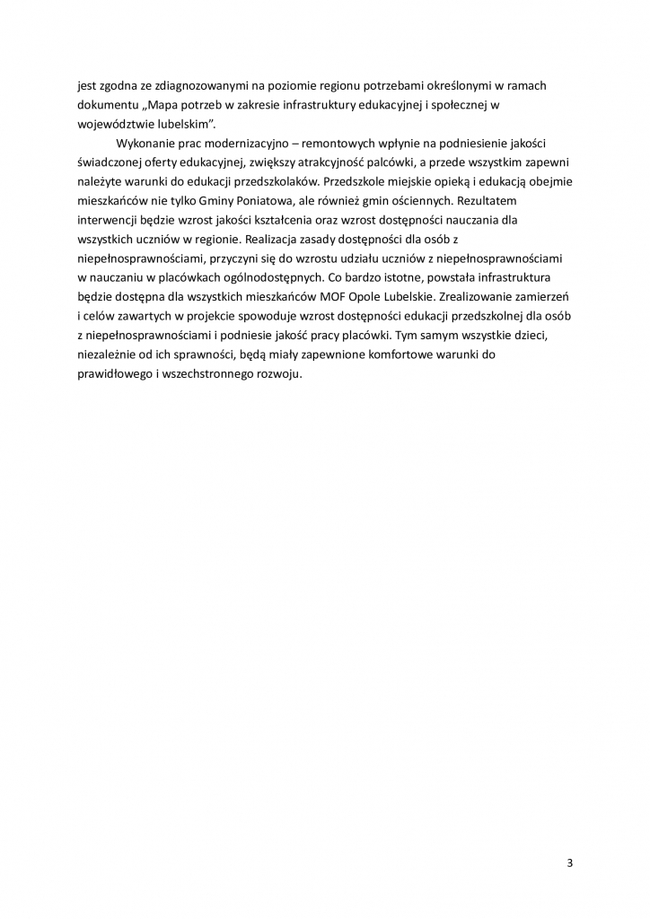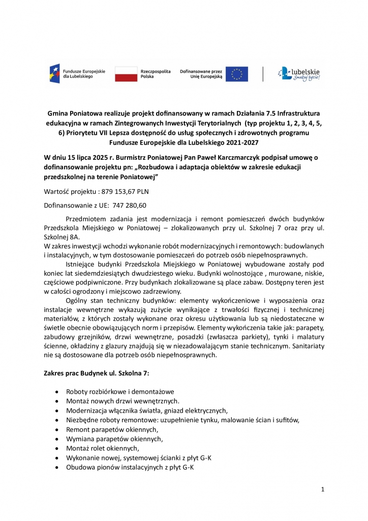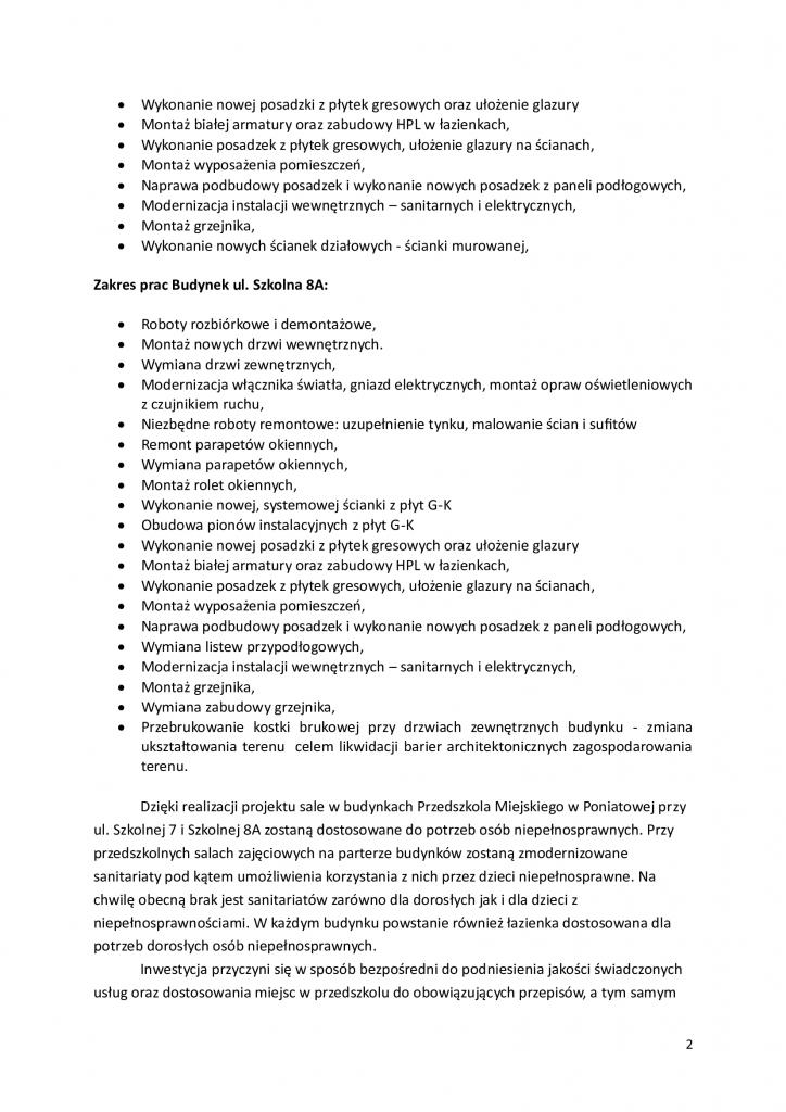 „Rozbudowa i adaptacja obiektów w zakresie edukacji przedszkolnej na terenie Poniatowej”