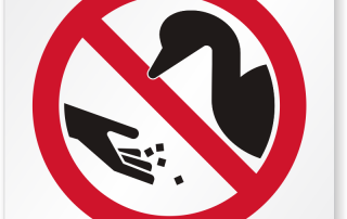tabliczki informujące o zakazie dokarmiania kaczek.