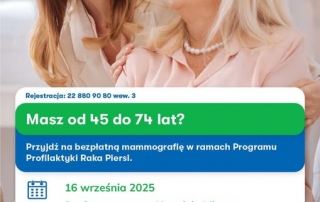 LUX MED Diagnostyka zaprasza na bezpłatne badania mammograficzne w technologii cyfrowej w ramach Programu Profilaktyki Raka Piersi finansowanego przez NFZ. Na badanie zapraszamy kobiety w wieku od 45 do 74 lat:- co 24 miesiące, […]
